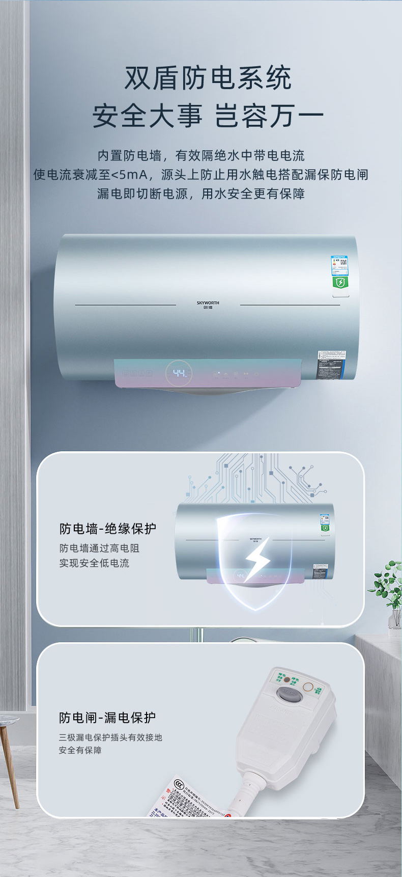 升級出水自動(dòng)斷電,源頭杜絕安全隱患;安全三防:防電閘、防電墻、出水?dāng)嚯姡踩U?00%