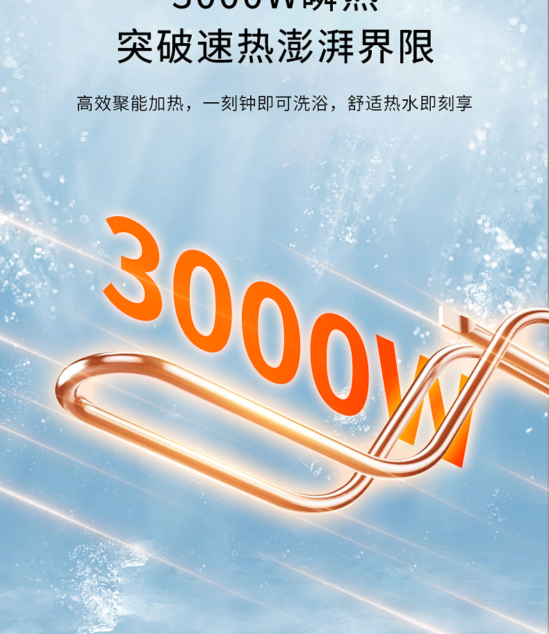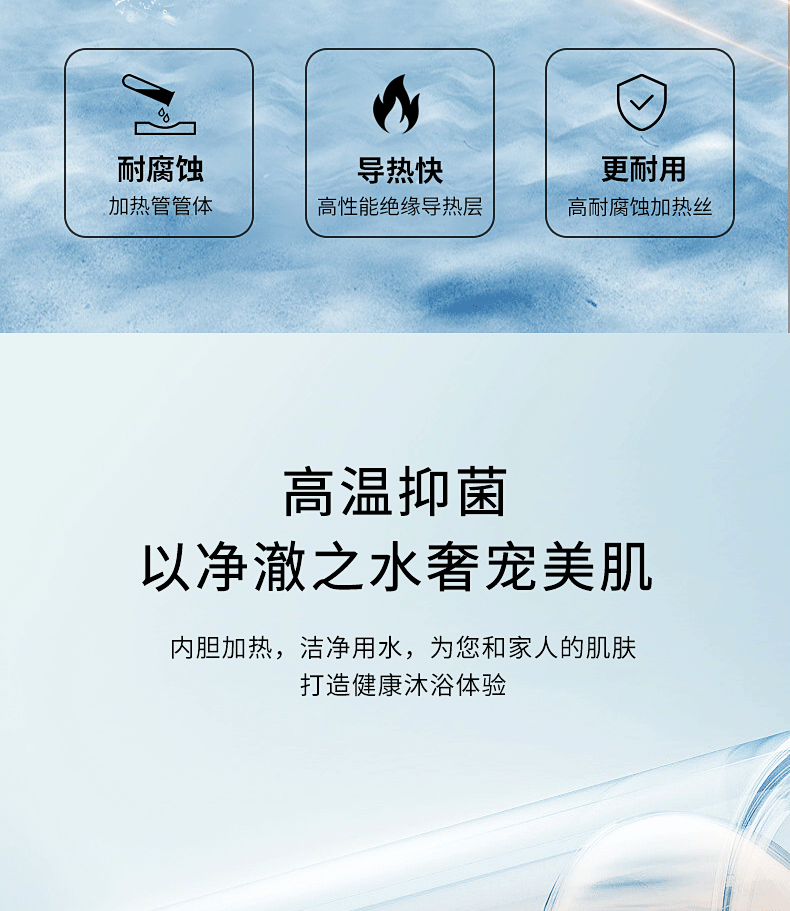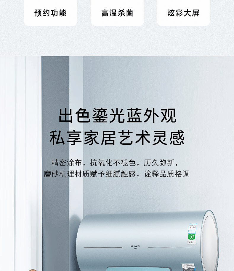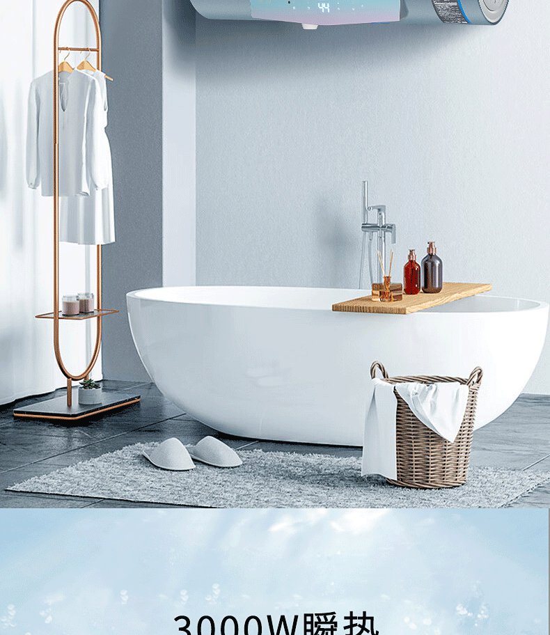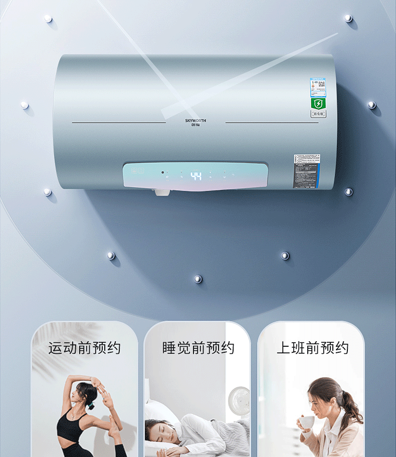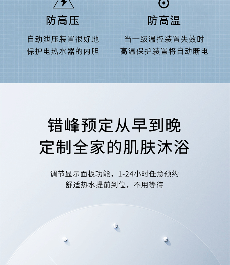 安全雙防:防電閘、防電墻、安全保障100% ;預約自動加熱,洗澡不用等