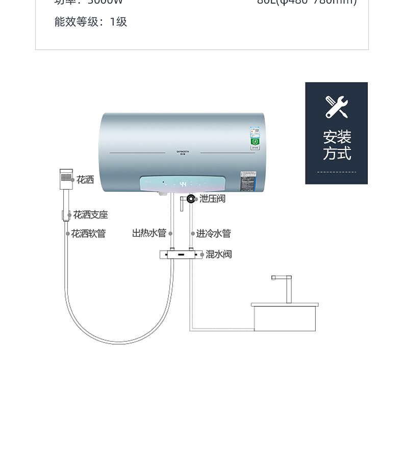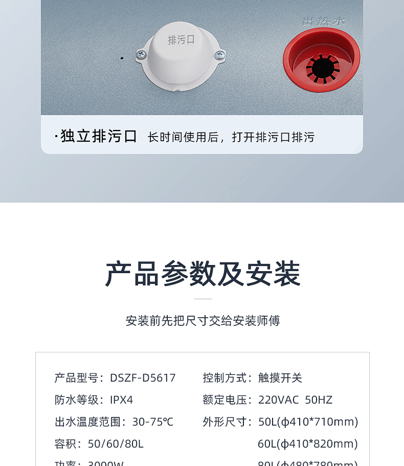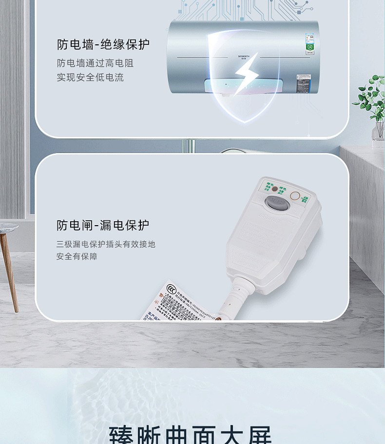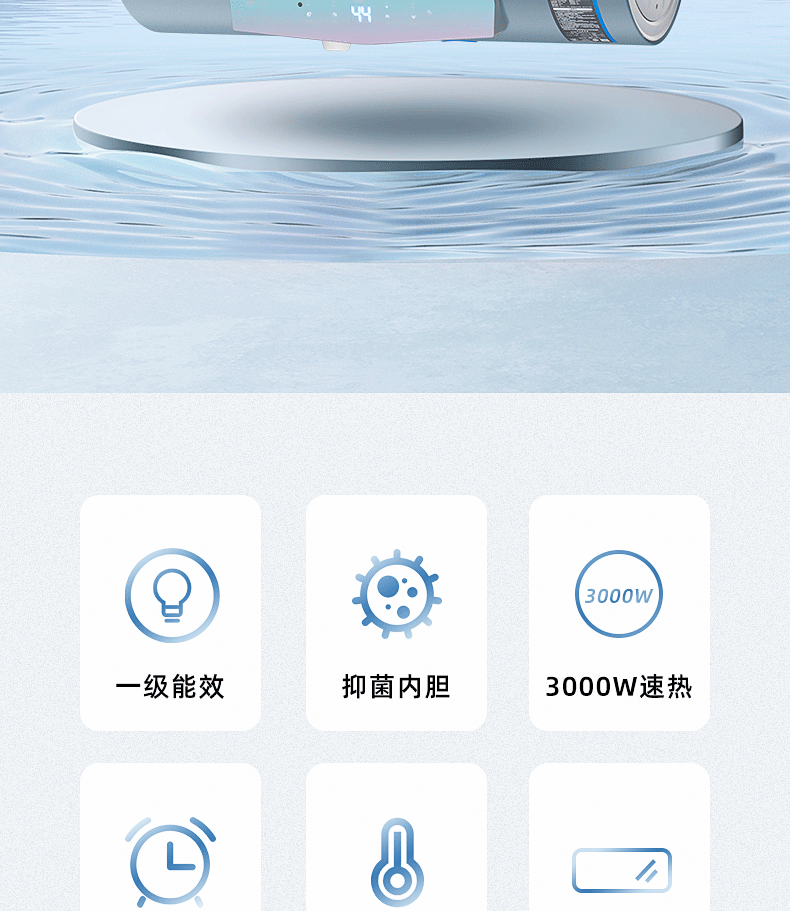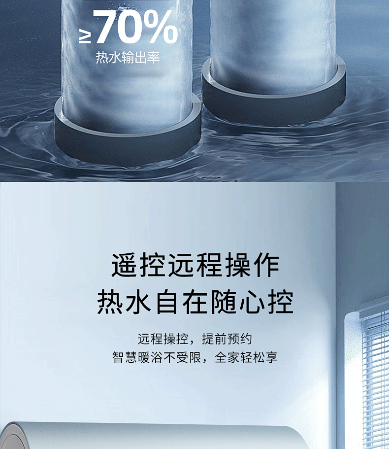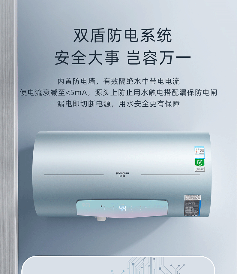 安全雙防:防電閘、防電墻、安全保障100% ;預約自動加熱,洗澡不用等