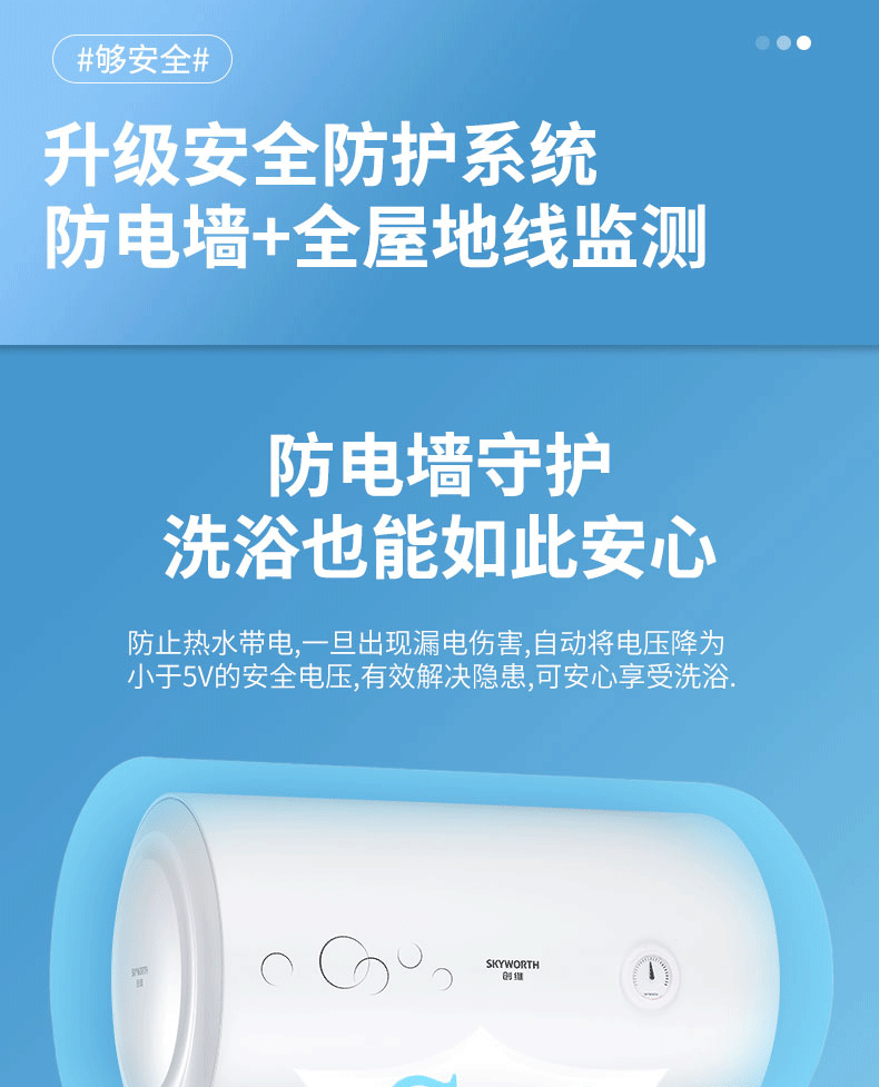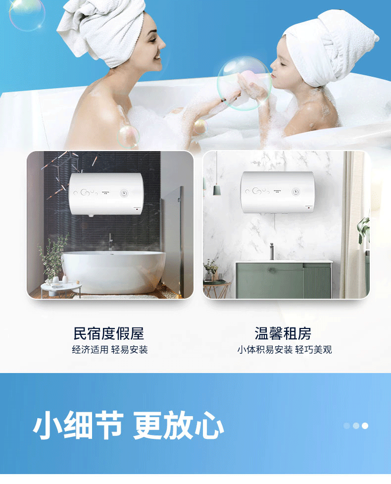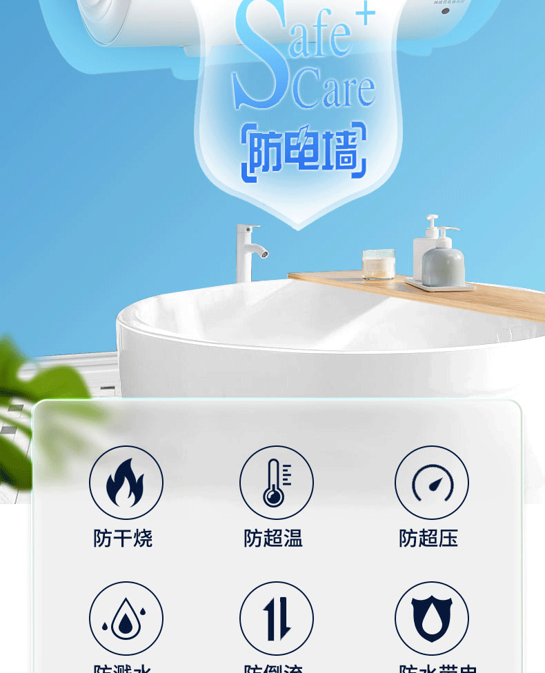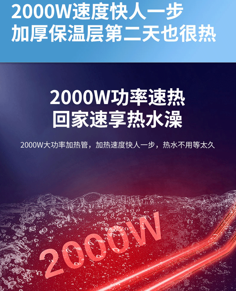 加長防電墻,用水安全無憂;2100W速熱,插電就洗熱水澡