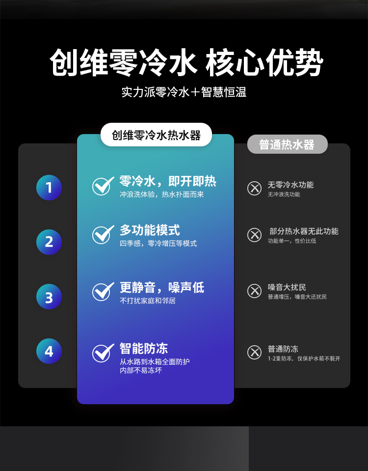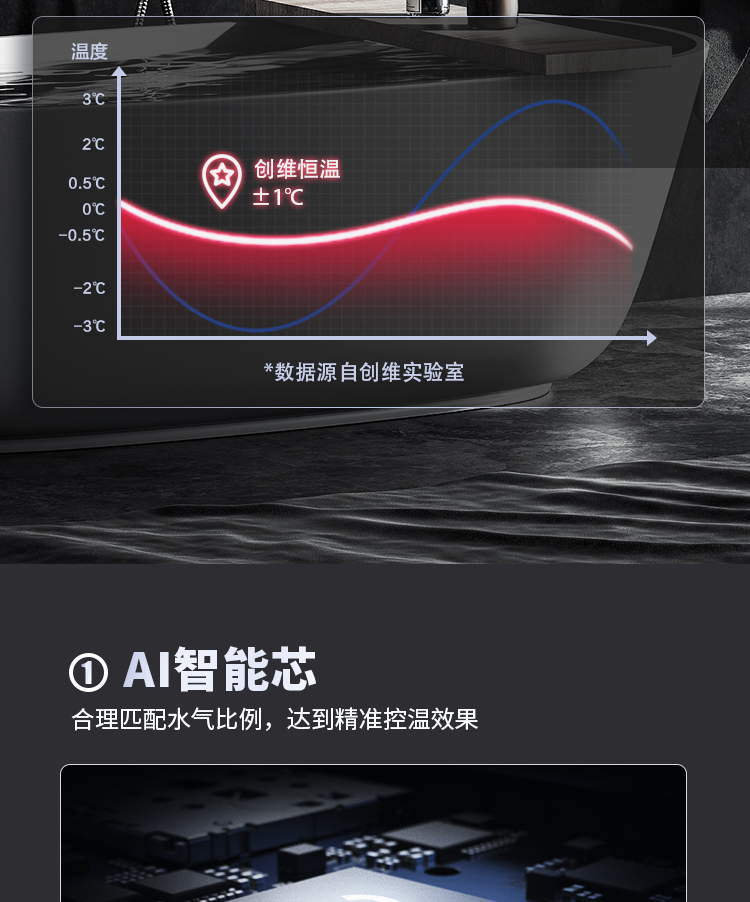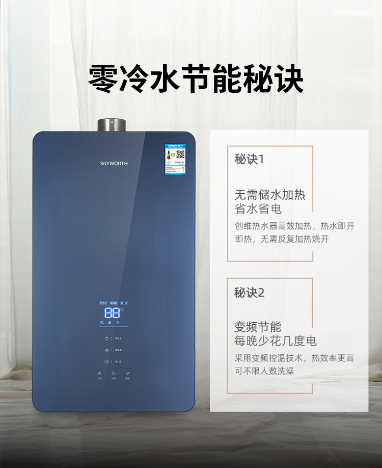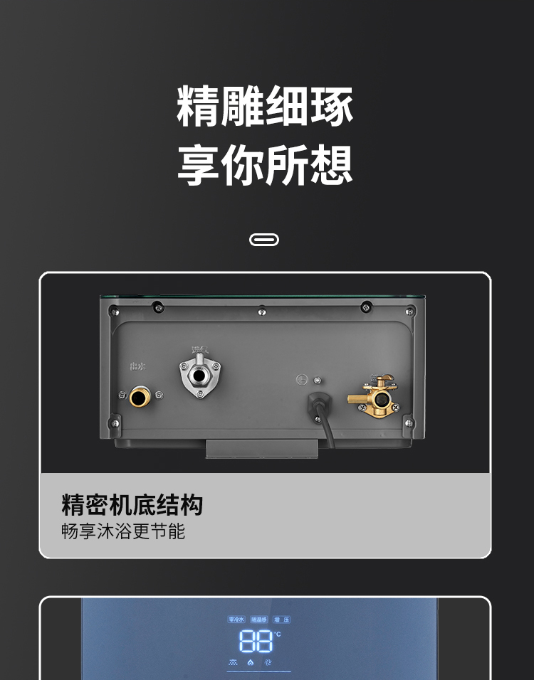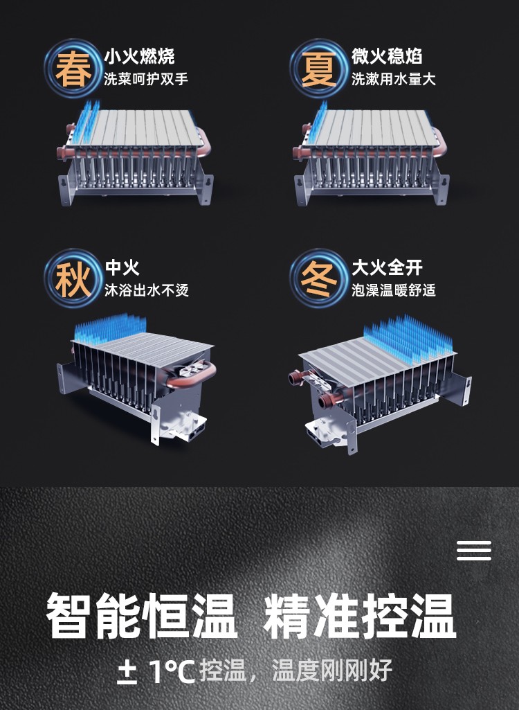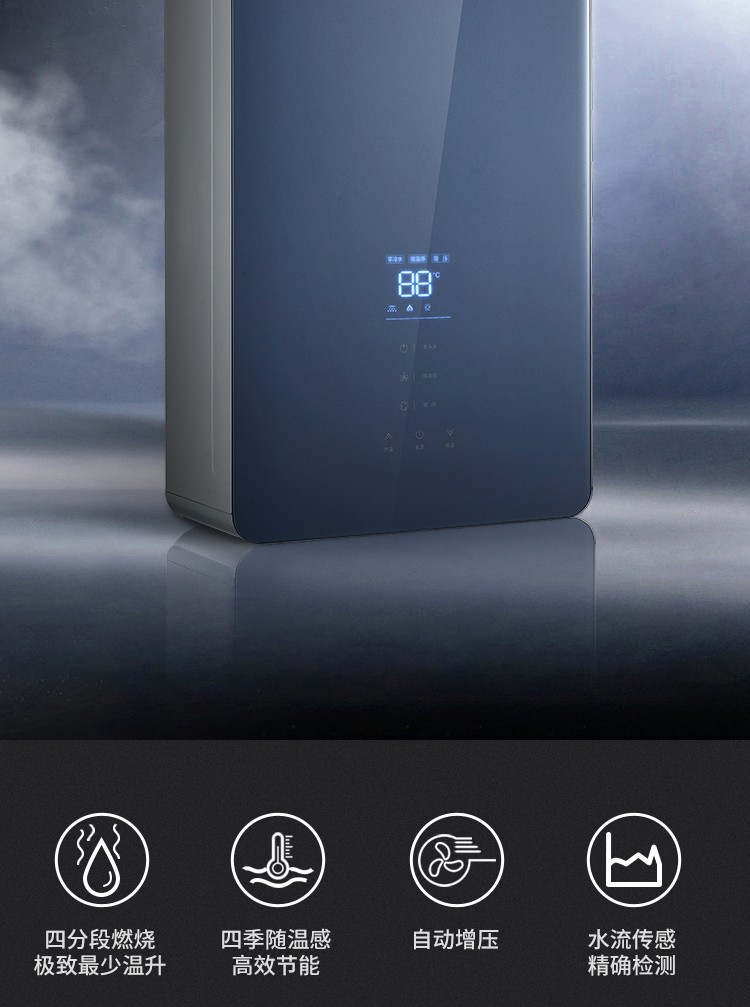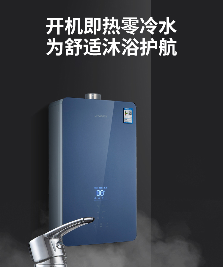 零冷水,回家即洗拒絕等待;智能恒溫±1°,多出用水不懼水溫變化