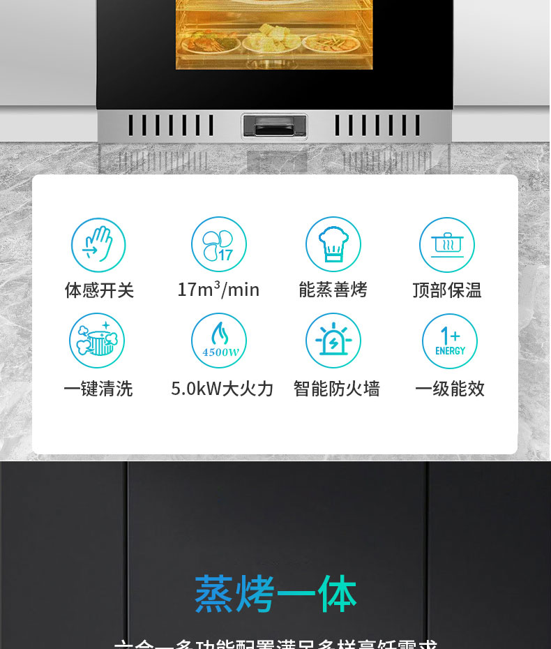 蒸、烤、爆炒多樣烹飪模式,小白秒變美食達(dá)人;一機(jī)多能,告別擁擠廚房,滿足多重廚房需求