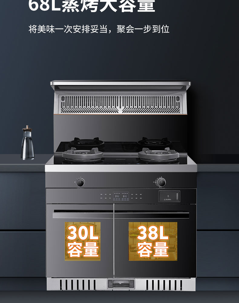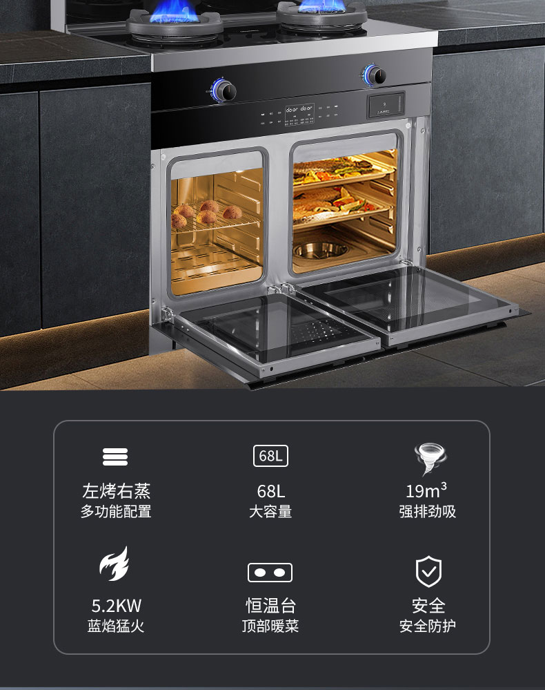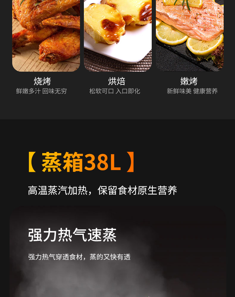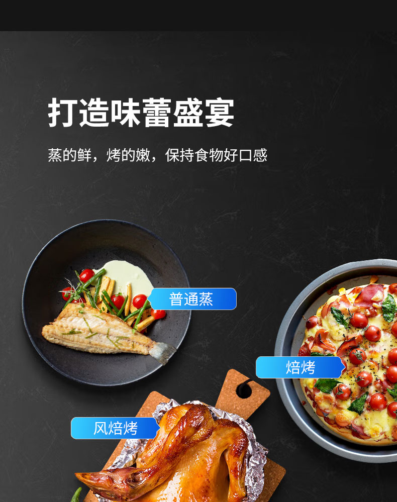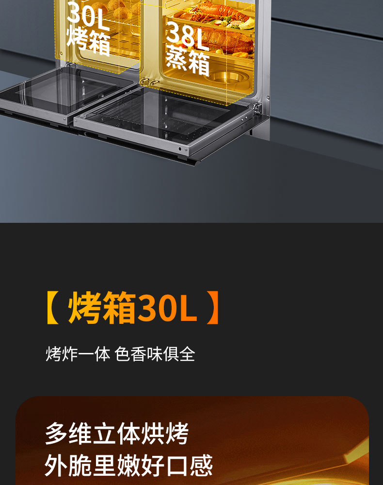 左蒸右烤蒸烤齊開,一步到位;一機多能,告別擁擠廚房,滿足多重廚房需求