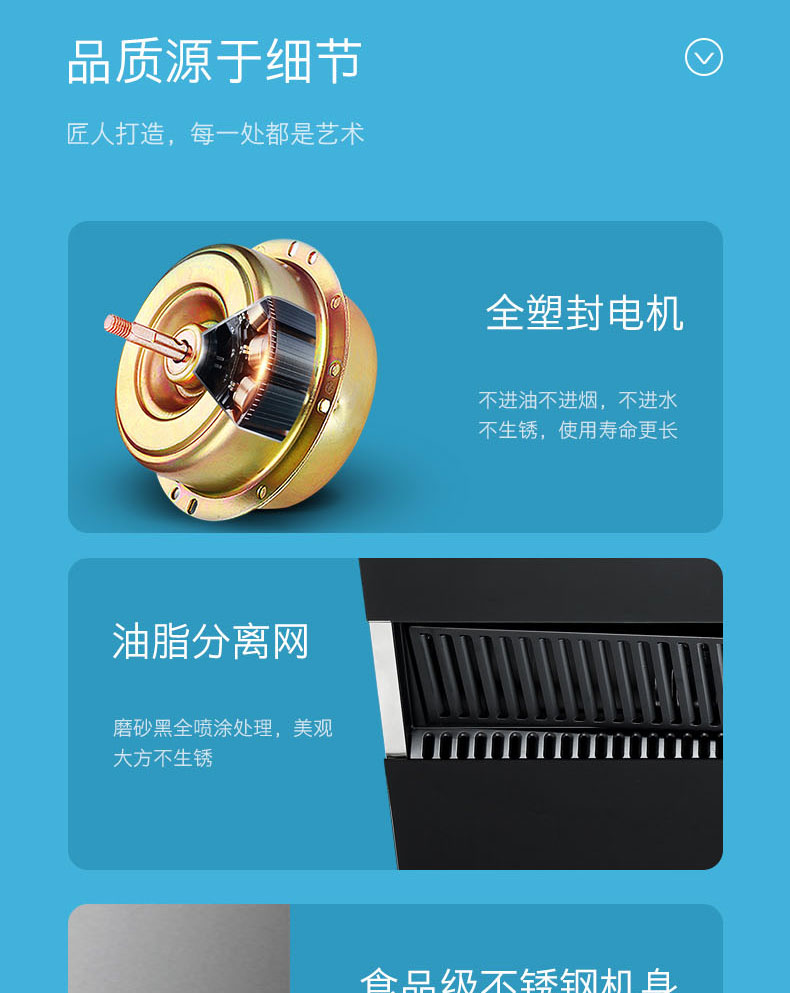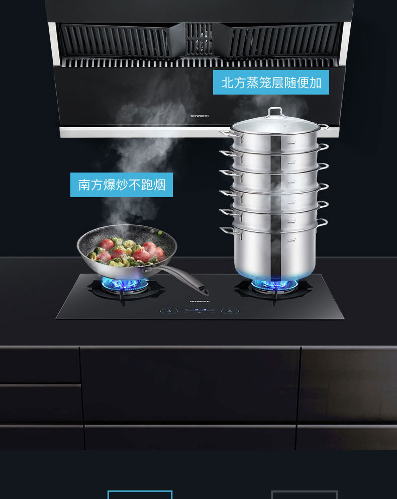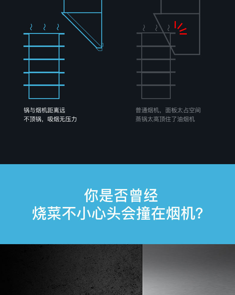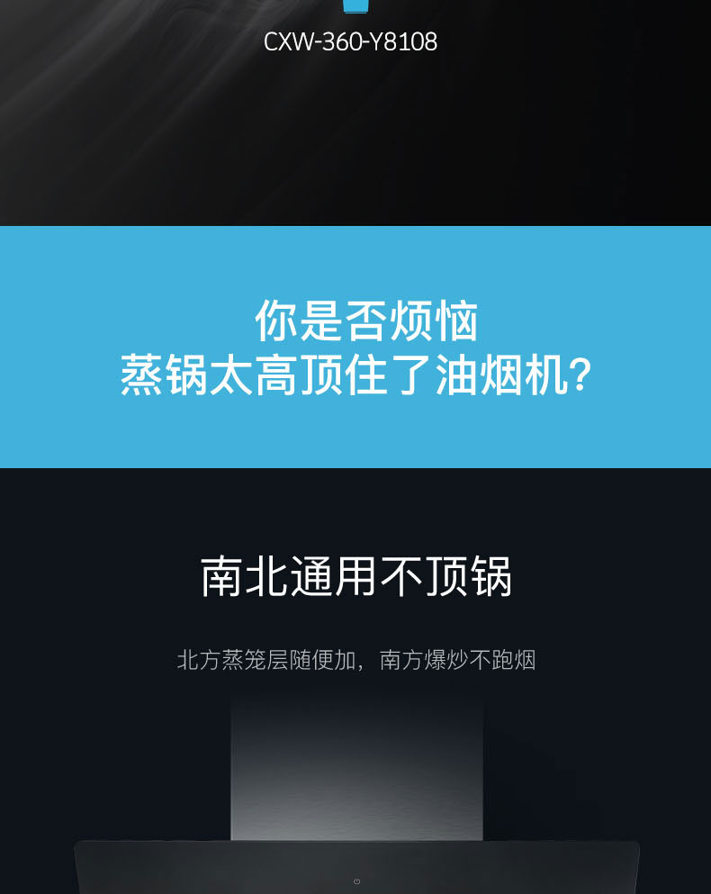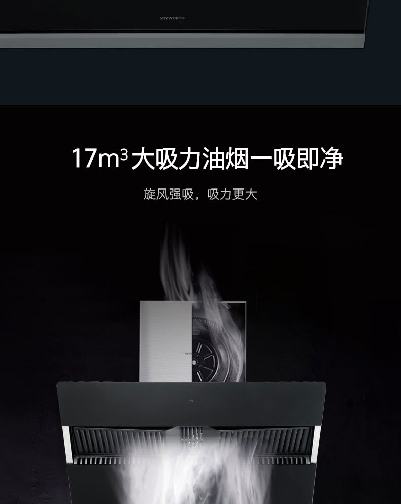 閃吸速排,油煙不上臉,烹飪美食更舒適;側(cè)吸不碰頭,炒菜無壓力
