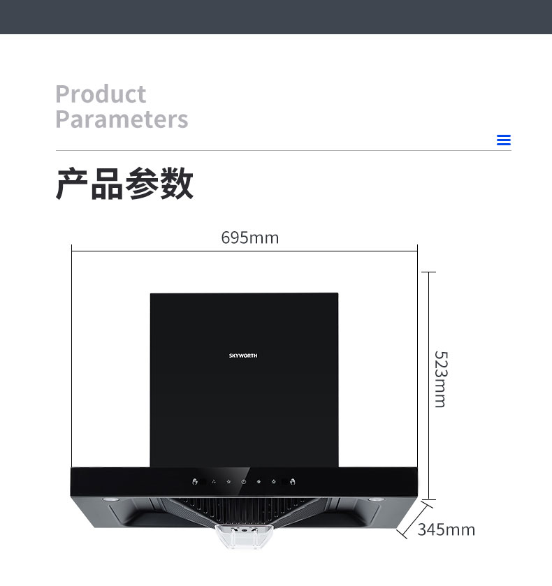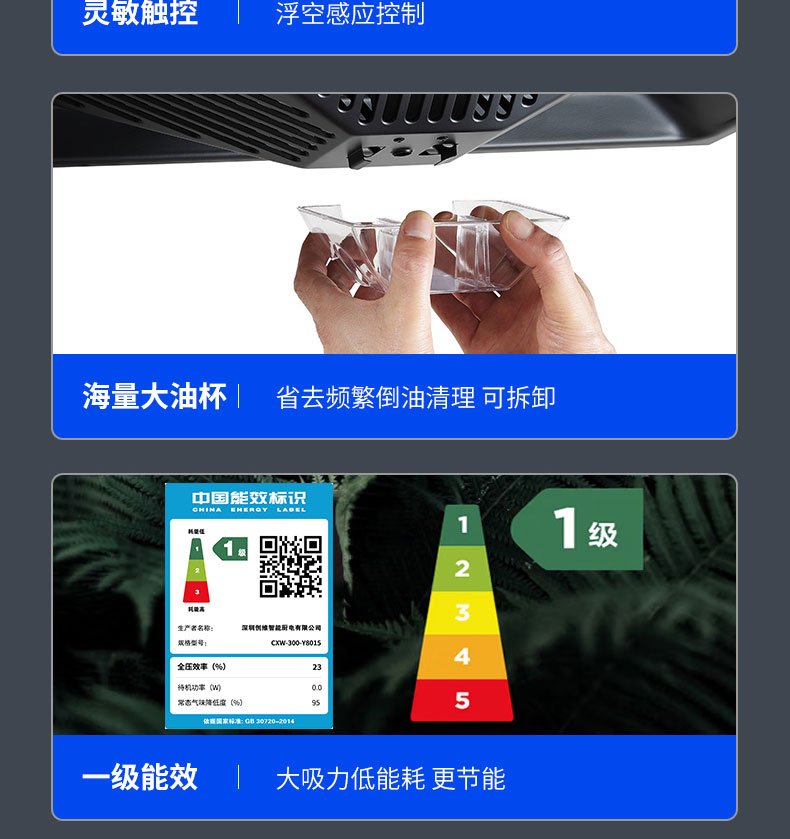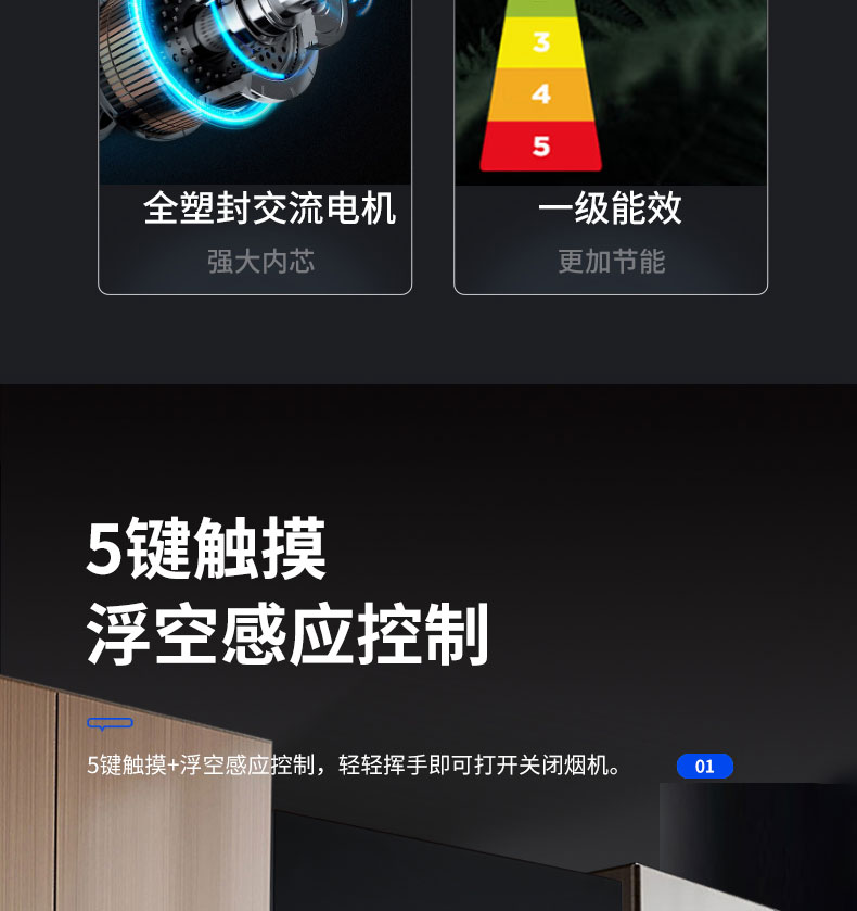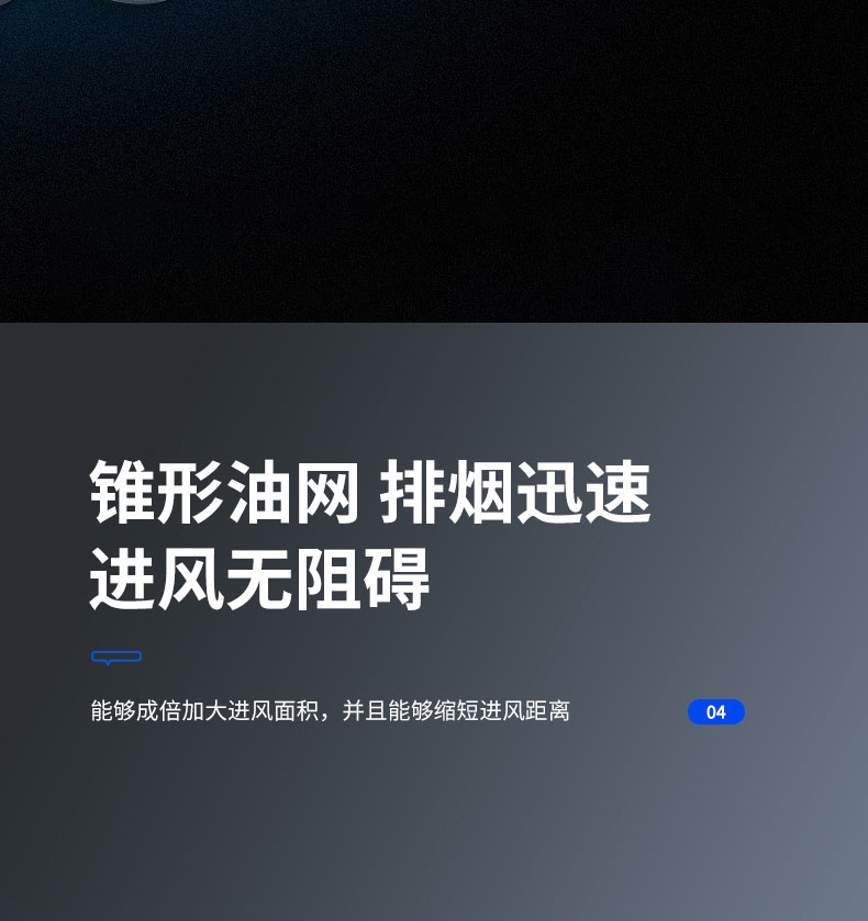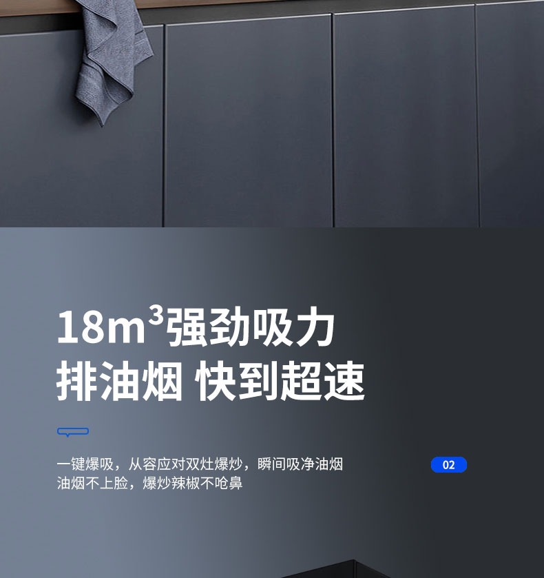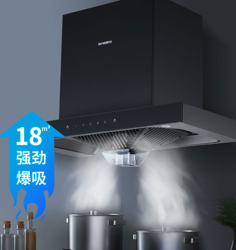 穹頂瞬吸,深腔攏煙油煙不擴散;一體成型免拆洗油煙腔